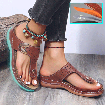 2024 Summer New Women's Metal Decor Feature Pattern Wedge Flip-Flops