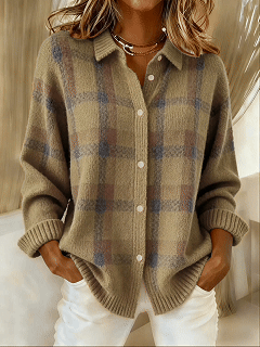 CLEARANCE SALE🔥Women's Casual Contrast Color Autumn And Winter Retro Plaid Print Buttoned Cardigan Sweater